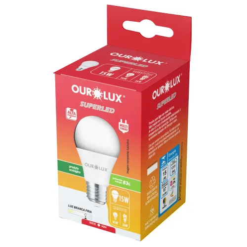 A Lâmpada LED SuperLED Alta Potência 15W foi desenvolvida para oferecer alto fluxo luminoso, economia de energia e iluminação eficiente em ambientes amplos residenciais e comerciais. Seu design bulbo A60, elegante e minimalista, permite substituir lâmpadas tradicionais por um único modelo moderno e de alto desempenho.