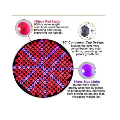 MELHORE O CRESCIMENTO COM EFICIÊNCIA: 186 LEDs vermelhos + 64 LEDs azuis = 250 esferas de LED de alta qualidade. As luzes de efeito estufa para plantas com a combinação de espectros vermelho e azul, que fornecem luz mais útil para ajudar as plantas a crescer mais rápido, mais saudável e mais forte. Especialmente quando a planta precisa de luz extra nos dias de chuva e neve. Design do copo do condensador a 60 °, tornando a luz mais concentrada e uniforme, promovendo o crescimento rápido das plantas.