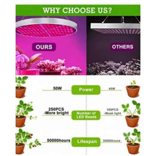 50W: luzes para plantas de interior UFO 250 LEDs Lampada de cultivo de espectro completo para hidroponia, estufas, barraca de cultivo, fábrica de plantas, plantio de flores e vegetais